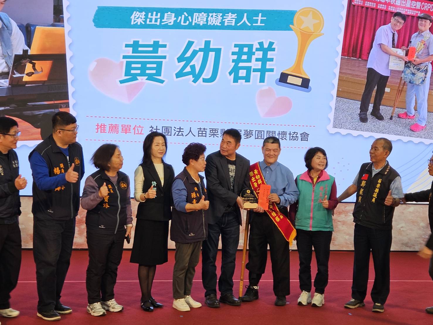 本會黃幼群獲頒「苗栗縣傑出身心障礙人士」榮譽,